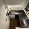 -Bucătărie High-End: Cuptor combi (electric + microunde) Electrolux, plită inducție, chiuvetă multifuncțională cu spălător de pahare și sistem de filtrare a apei (Aquaphor).