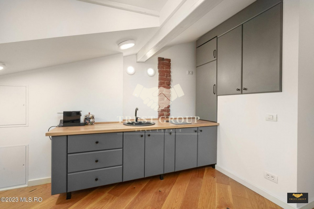 Studio cochet, complet mobilat si utilat, cu o suprafață de 33,50mp, perfect pentru un cuplu tanar sau un celibatar. Interior spatios cu zona de dormit, bucatarie completa, semineu.