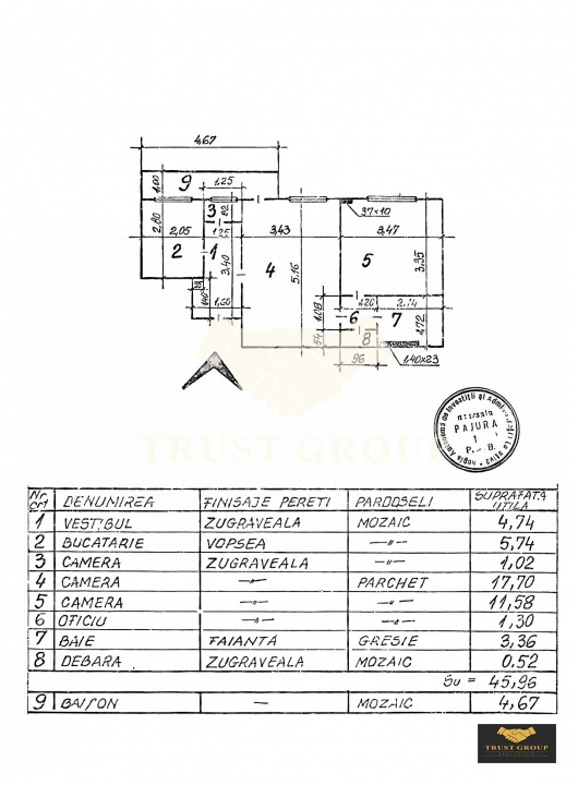 Dispune de o suprafata totala de 50mp, este semidecomandat si compartimentat astfel: living, bucatarie, dormitor, baie, hol, spatii de depozitare si un balcon.