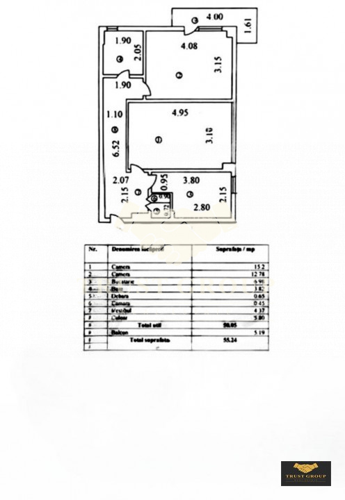 • Suprafață utilă totală: 51 mp (include balconul închis).