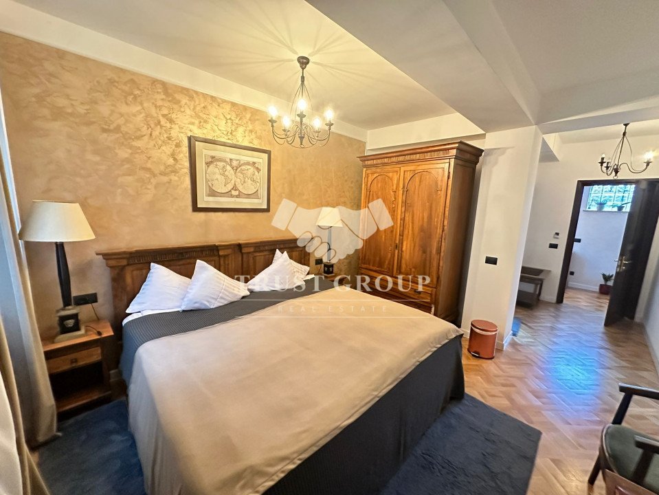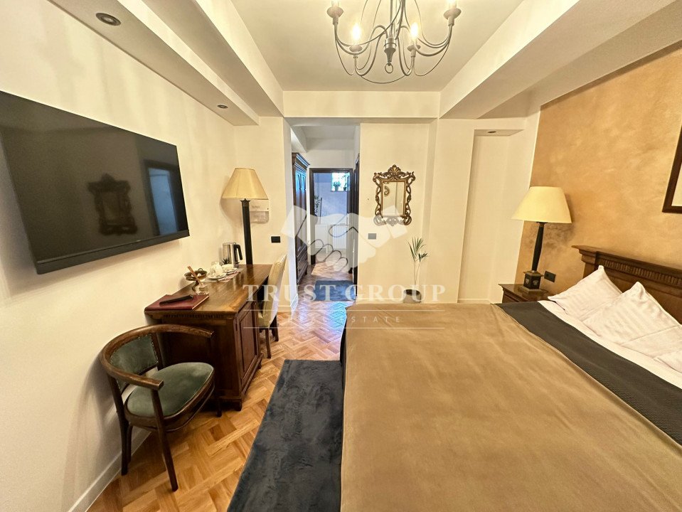 Mobilierul din lemn masiv completează eleganța și rafinamentul acestui spațiu, transformându-l într-un cămin perfect pentru cei care apreciază confortul și stilul.