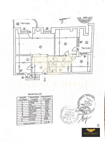 Dispune de o suprafata totala de 125mp, este decomandat si compartimentat astfel: living, bucatarie, doua dormitoare, doua bai, hol, spatii de depozitare si un balcon.