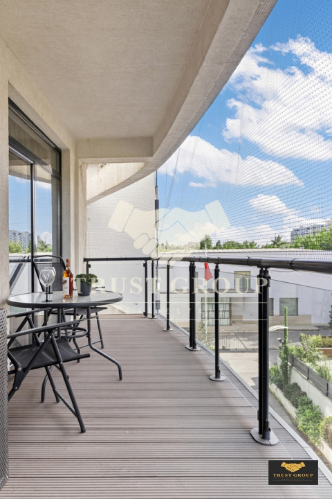 • Balcon cu vedere spre zonele verzi și lac,