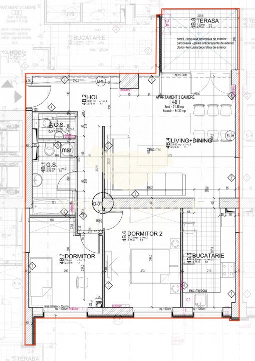 Proprietatea oferă o suprafață utilă de 78 mp, la care se adaugă o terasă de 8 mp, însumând 86 mp utili totali – un apartament decomandat, atent compartimentat, luminat și conceput pentru un stil de viață confortabil: