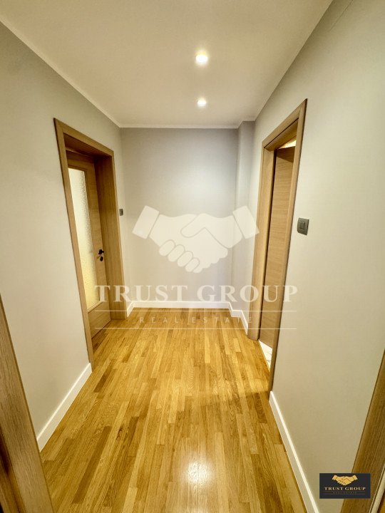 • Pardoseli din parchet și gresie, pereți vopsiți lavabil, uși interioare din lemn și ușă metalică la intrare,