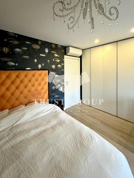 Apartamentul este amenajat cu mobilier modern, de top, iar jaluzelele electrice permit controlul luminii și al intimității cu un simplu gest. Finisajele sunt premium, ferestrele din aluminiu cu termopan asigură izolație superioară, iar climatizarea eficientă, împreună cu centrala proprie și încălzirea în pardoseală, garantează confort pe tot parcursul anului.