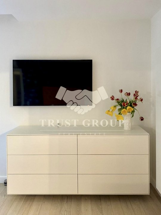 Cu o suprafata generoasa de 119 mp, apartamentul dispune de 3 camere spatioase, un living cu o zona de dinning si un grup sanitar, doua dormitoare fiecare cu baie proprie, creand astfel intimitate si confort pentru fiecare membru al familiei. Mobila moderna si de cea mai buna calitate completeaza atmosfera eleganta a spatiului, iar jaluzelele electrice va permit sa controlati lumina naturala si intimitatea.