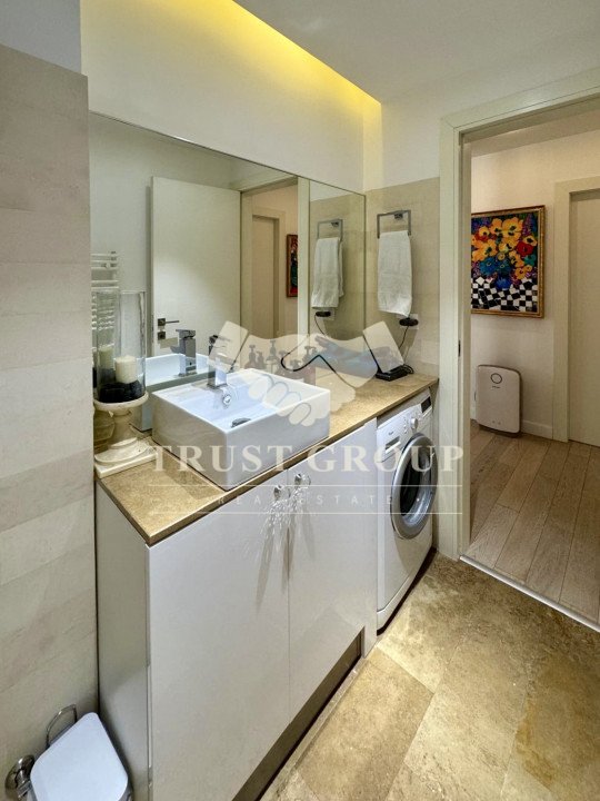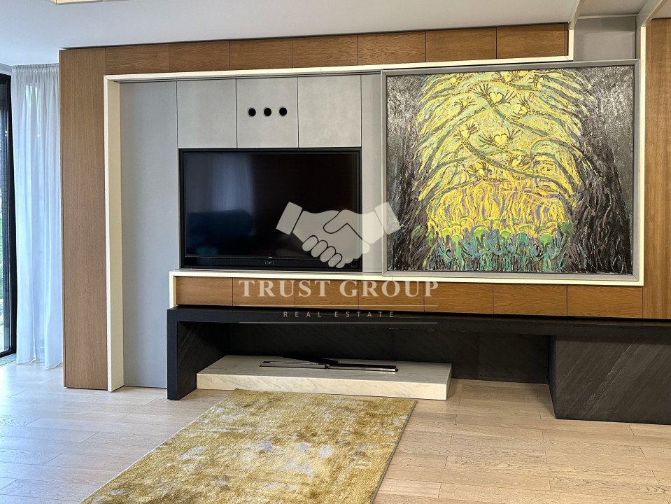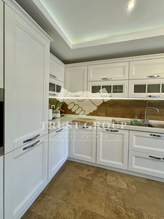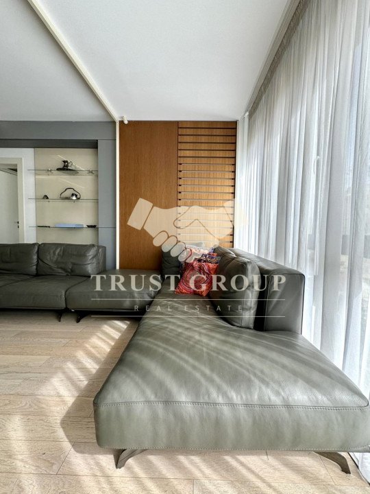 Apartamentul este amenajat cu mobilier modern, de top, iar jaluzelele electrice permit controlul luminii și al intimității cu un simplu gest. Finisajele sunt premium, ferestrele din aluminiu cu termopan asigură izolație superioară, iar climatizarea eficientă, împreună cu centrala proprie și încălzirea în pardoseală, garantează confort pe tot parcursul anului.