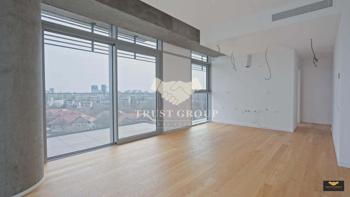 Dispune de o suprafata totala de 92mp, este decomandat si compartimentat astfel: living, bucatarie, doua dormitoare, doua bai, hol, spatii de depozitare si o terasa de 16mp.