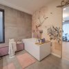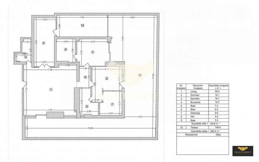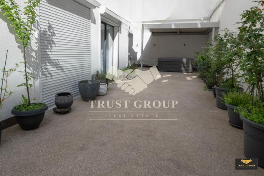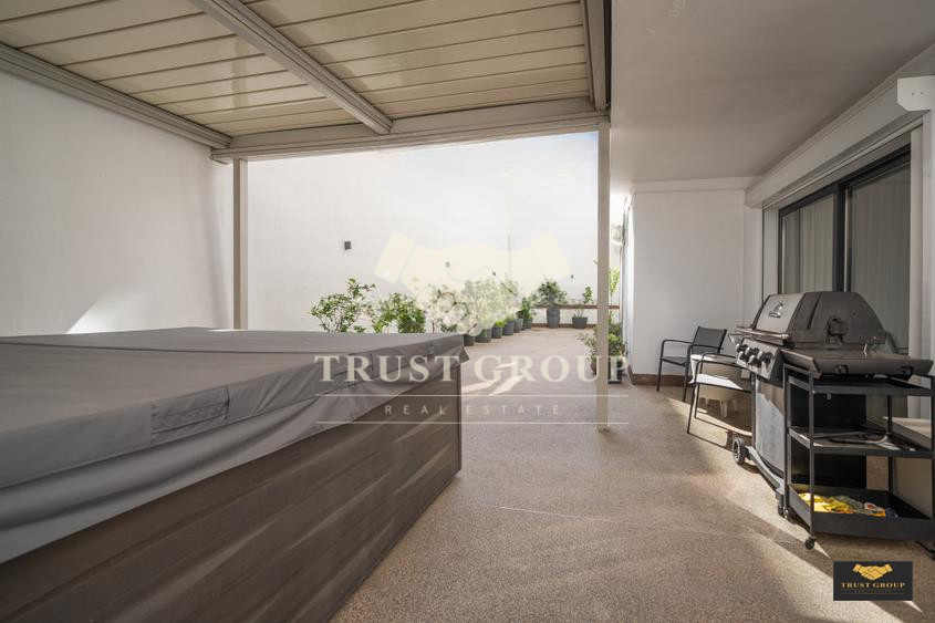 Dispune de o suprafata utila totala de 134mp, este decomandat si compartimentat astfel: living, bucatarie, doua dormitoare, trei bai, hol, spatii de depozitare si o terasa/ curte de 146mp.