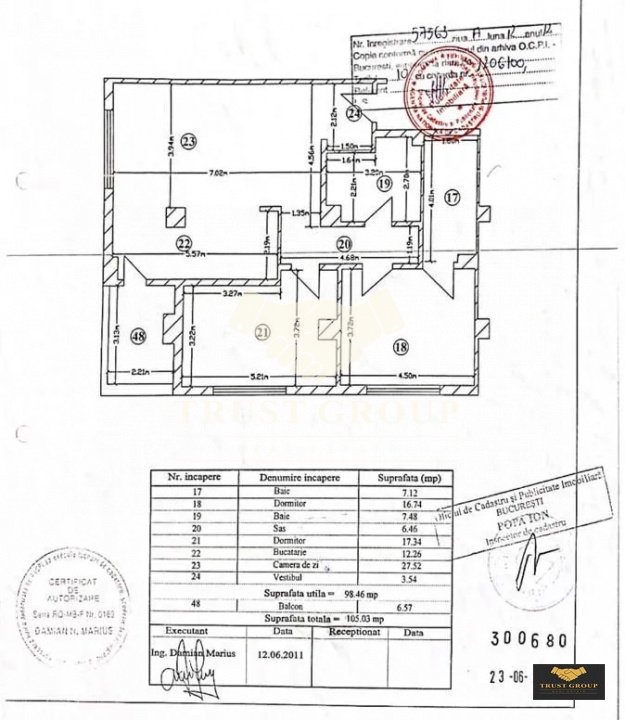 Dispune de o suprafata totala de 106mp, este decomandat si compartimentat astfel: living, bucatarie, doua dormitoare, doua bai, hol, spatii de depozitare si un balcon de 6,5mp