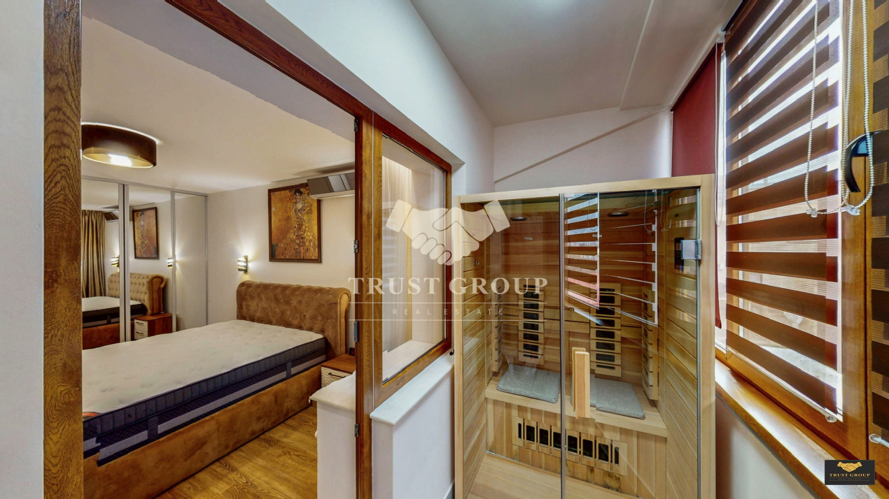 Dormitorul matrimonial oferă intimitate și confort, beneficiind de un dressing si de baie proprie si cu acces direct către balcon. Aici se regăsește un element cu adevărat special: o saună privată, perfectă pentru relaxare în confortul propriei locuințe.