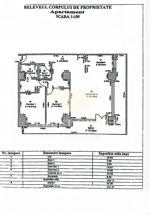 Compartimentarea este inteligent realizată, oferind intimitate și funcționalitate în egală măsură. Vei regăsi un living amplu, inundat de lumină naturală, perfect pentru serile petrecute în familie sau cu prietenii, două dormitoare spațioase și primitoare, o bucătărie care așteaptă să fie personalizată după gustul viitorului proprietar, precum și două băi moderne, ambele dotate cu cabine de duș elegante. În plus, apartamentul dispune și de un WC de serviciu – un detaliu practic și apreciat în locuințele de acest tip.