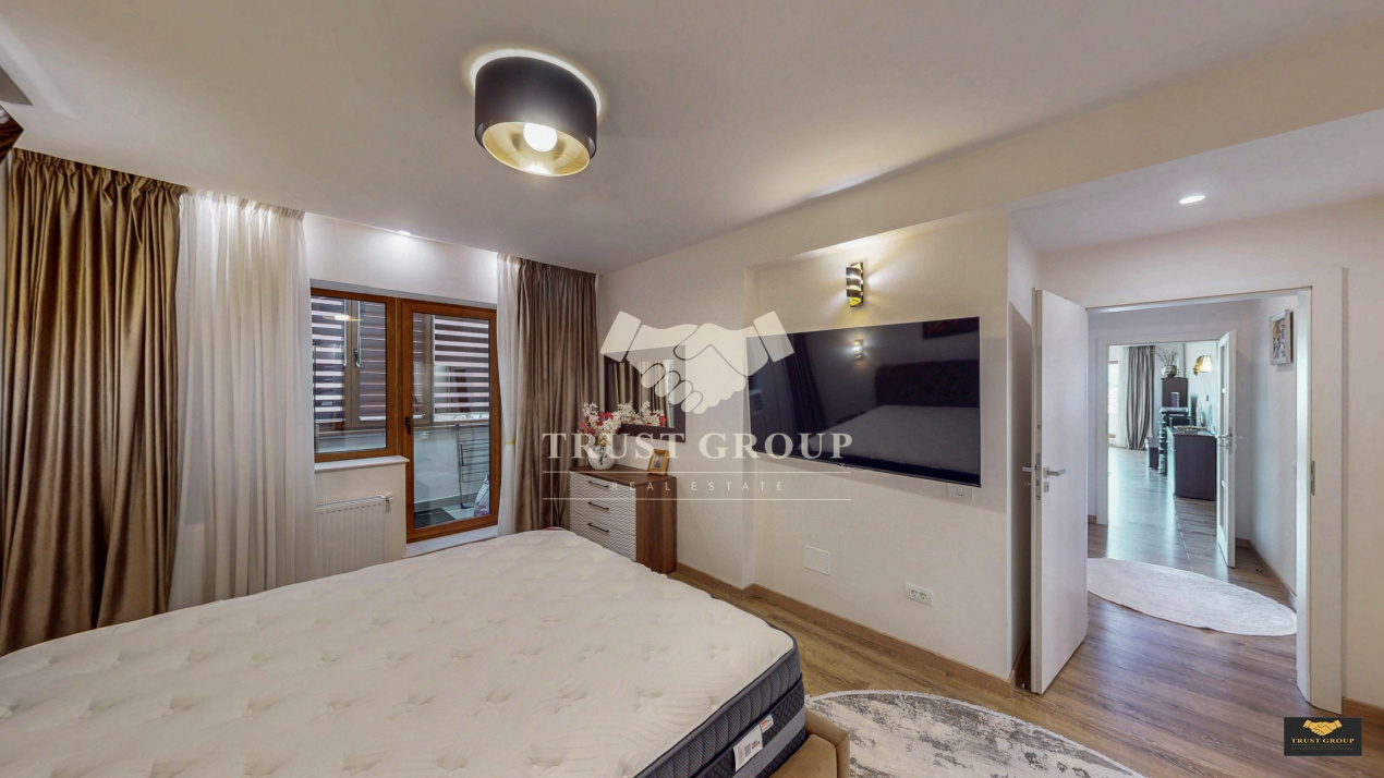 Dormitorul matrimonial oferă intimitate și confort, beneficiind de un dressing si de baie proprie si cu acces direct către balcon. Aici se regăsește un element cu adevărat special: o saună privată, perfectă pentru relaxare în confortul propriei locuințe.