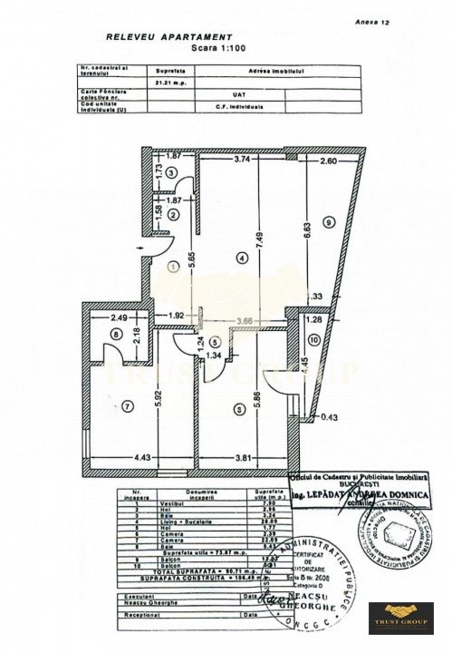 • Bloc finalizat în 2007, regim S+P+4 etaje,