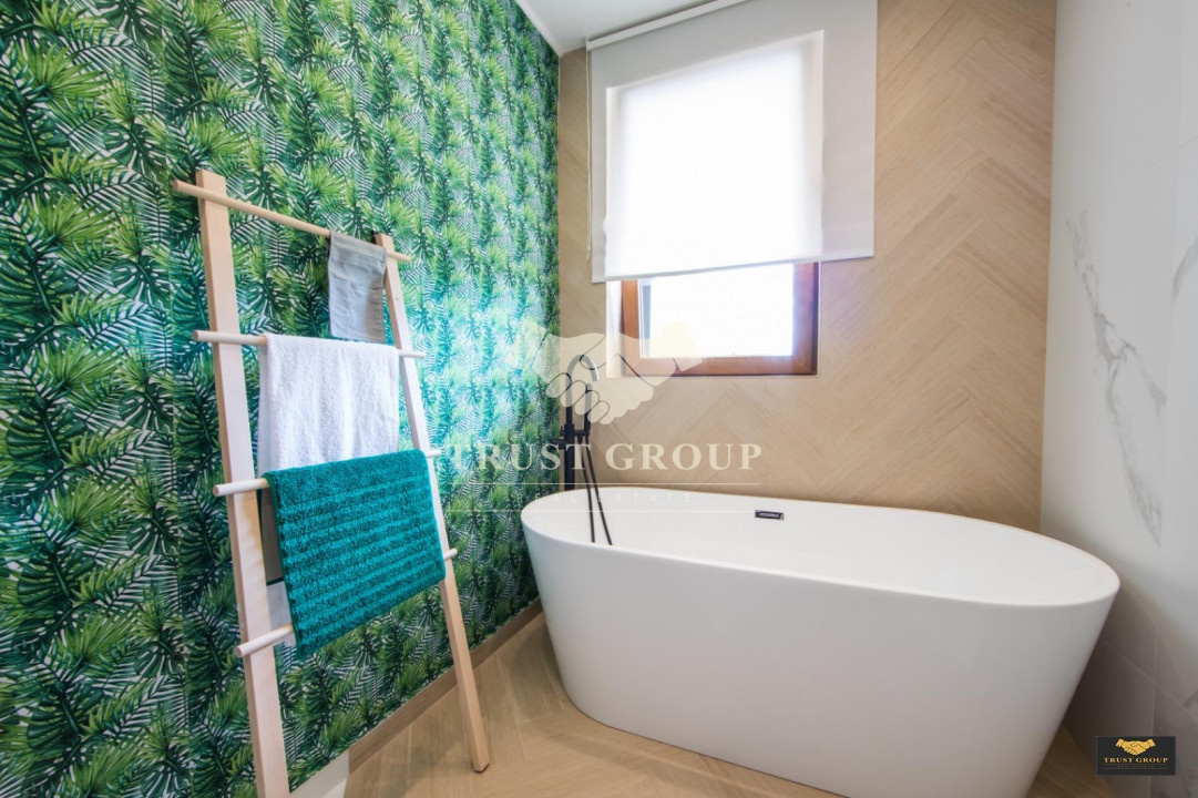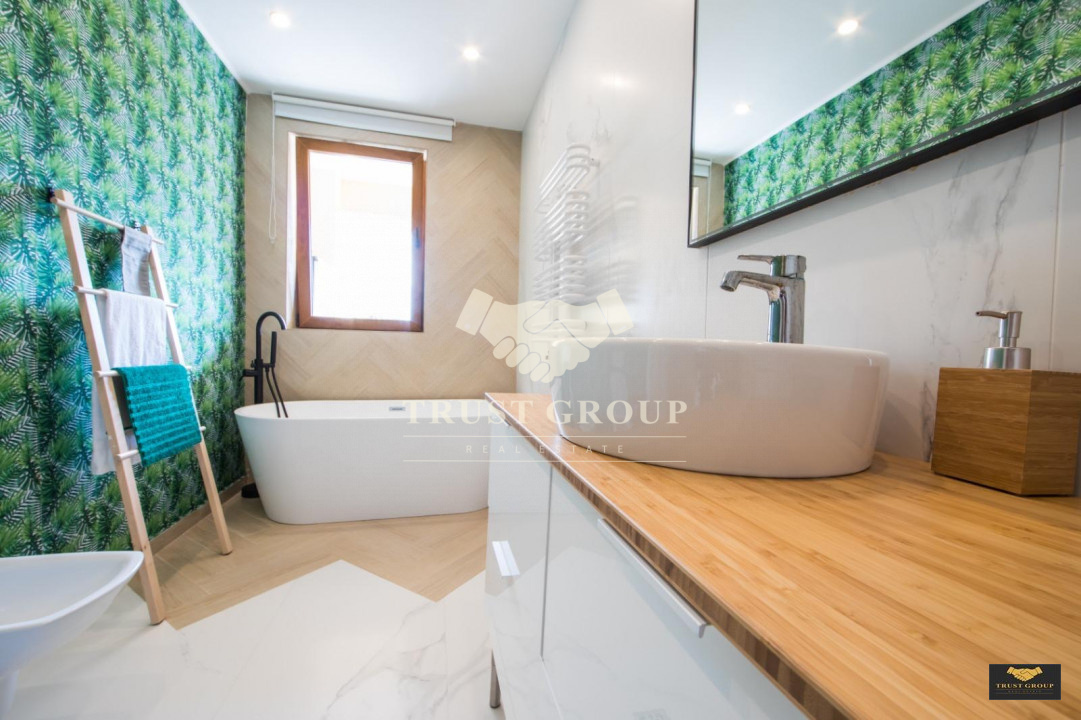 Dispune de o suprafata totala de 153mp, este decomandat si compartimentat astfel: living, bucatarie, trei dormitoare, trei bai, hol, spatii de depozitare si trei terase de 24mp in total.