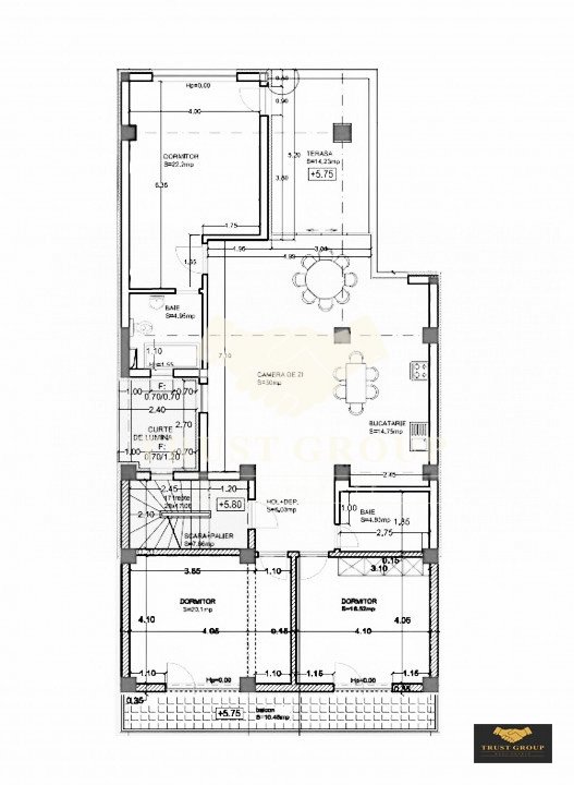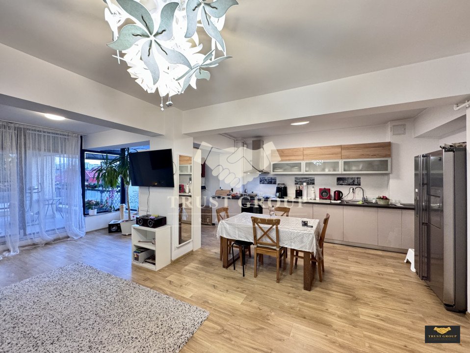 Living cu bucătărie open space de ~50 mp, 3 dormitoare, 2 băi. Centrală proprie cu zonare pe 4 zone și control Honeywell, AC Daikin cu control remote, tâmplărie PVC cu geam termopan, interfon și supraveghere video. Parcare subterană și boxă la subsol, acces cu ușă automată. Utilitati contorizate individual.