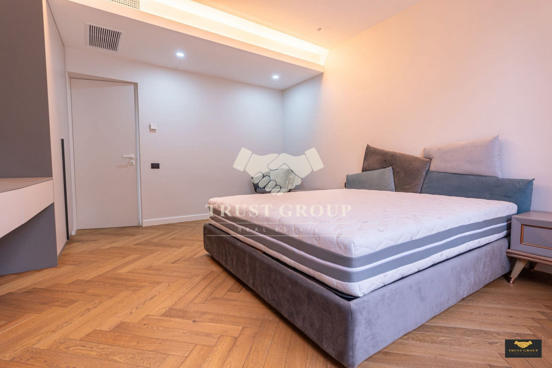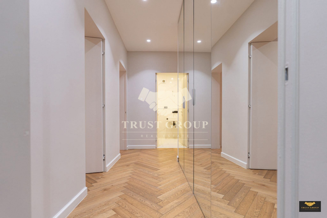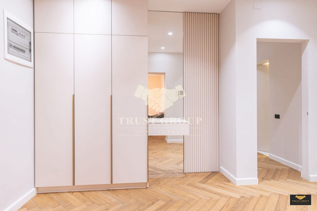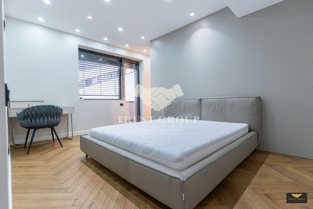 Dispune de o suprafata totala de 151mp, este decomandat si compartimentat astfel: living, bucatarie, trei dormitoare, trei bai, hol, spatiii de depozitare si doua balcoane.Dormitorul matrimonial este prevazut cu dressing, baie cu dus şi un mic balcon. Mobilierul întregului apartament este făcut la comanda iar parchetul este din lemn masiv.