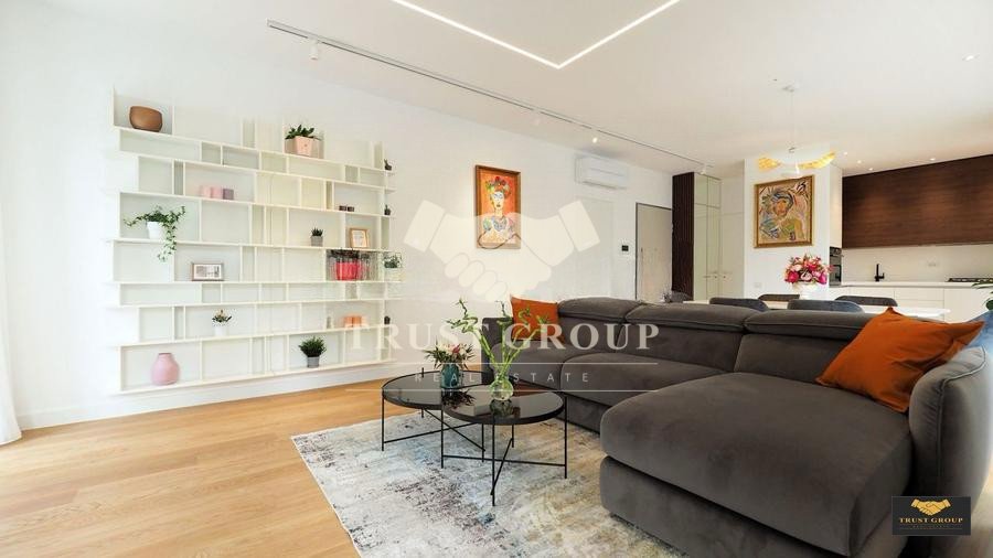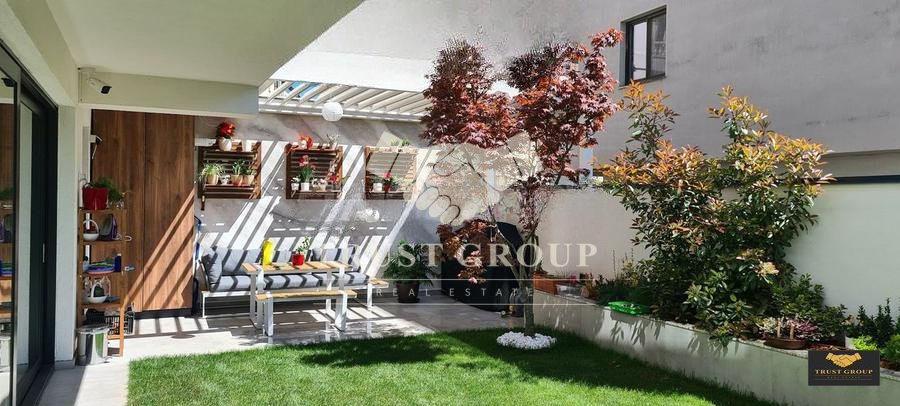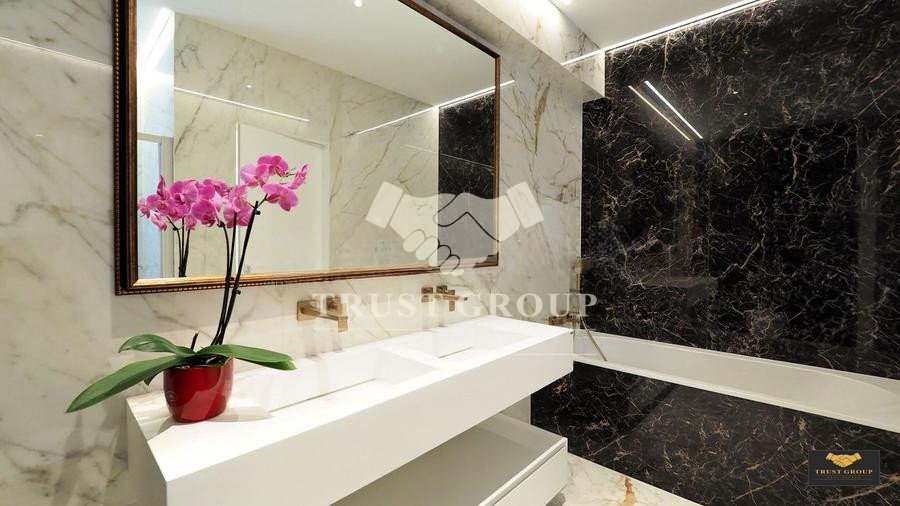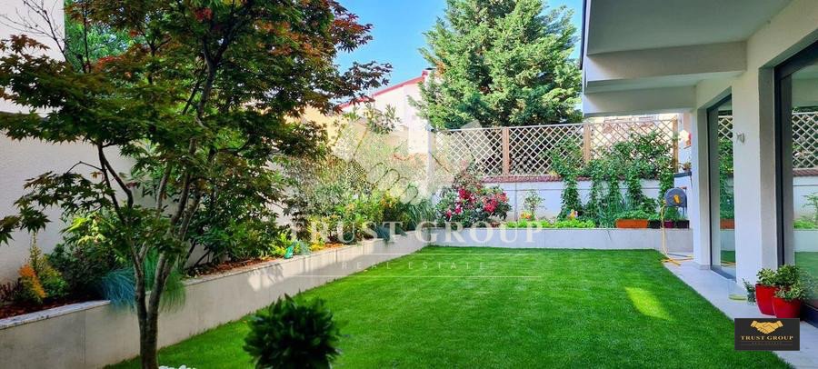 La doar cativa pași de Parcul Herastrau, pe o strada privata cu acces restrictionat, acest imobil rezidential boutique se desfășoară pe 3 nivele, S+P+2+3R si are doar 7 unitati rezidentiale toate cu 4 camere. Este orientat sud-vest, fiind insorit toata ziua. Suprafața totala a apartamentului este de 297mp construiti, din care 140mp utili si 140mp terase. Este compus din zona de zi generoasa de 47mp cu living, dining si bucatarie (poate fi inchisa), gradina exclusiva de 115mp cu gazon si plante mature, grup sanitar, dormitor matrimonial cu baie proprie cu cada si dus de 30mp, terasa 26mp, 2 dormitoare secundare fiecare de 15mp care au fiecare baie proprie. Suplimentar, un birou/gym/dormitor de oaspeti/bona poate fi amenajat. Finisajele sunt de calitate superioara (fatada ventilata HPL, ferestre aluminiu Reynaers, centrala proprie Vaillant cu boiler 150l si sistem de recirculare, incalzire in pardoseala Uponor automatizata, aer conditionat Mitsubishi cu Plasma Cluster si senzor proximitate, parchet Bauwerk-Elvetia, ceramica de mari dimensiuni Marazzi Grande Italia, sanitare Villeroy & Boch si Hans Grohe Metropol, lift Otis, 2 pergole retractabile aluminiu actionate cu telecomanda). Mobilierul (Bo-Concept si Rovere), electronicele si electrocasnicele sunt incluse. Apartamentul beneficiaza de 2 locuri de parcare in garajul subteran. Avand in vedere locatia irepetabila in zona verde si linistita, apropierea de zona de business Barbu Vacarescu-Floreasca, spatiile generoase si calitatea superioară a ansamblului, este una din cele mai bune opțiuni rezidentiale de lux.