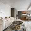 Zona de living impresionează prin dimensiuni și lumină naturală, fiind perfect conectată cu terasa, un spațiu ideal pentru relaxare sau socializare. Bucătăria este complet mobilată și utilată, iar cele 3 băi sunt finisate cu materiale de calitate superioară. Dormitoarele dispun de spații de depozitare generoase, inclusiv dressing, iar apartamentul beneficiază și de WC de serviciu.