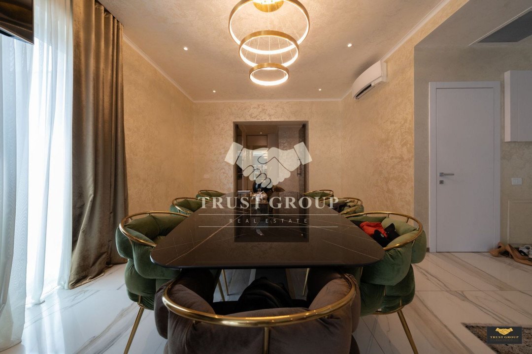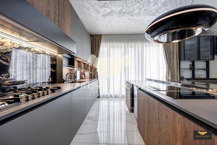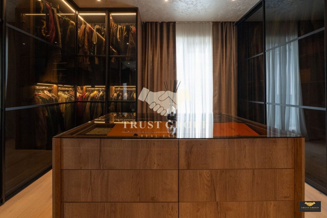 Zona de living impresionează prin dimensiuni și lumină naturală, fiind perfect conectată cu terasa, un spațiu ideal pentru relaxare sau socializare. Bucătăria este complet mobilată și utilată, iar cele 3 băi sunt finisate cu materiale de calitate superioară. Dormitoarele dispun de spații de depozitare generoase, inclusiv dressing, iar apartamentul beneficiază și de WC de serviciu.