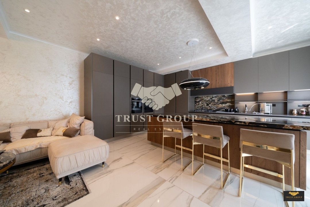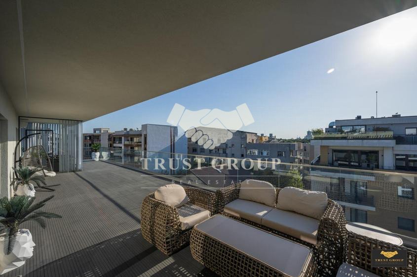 Zona de living impresionează prin dimensiuni și lumină naturală, fiind perfect conectată cu terasa, un spațiu ideal pentru relaxare sau socializare. Bucătăria este complet mobilată și utilată, iar cele 3 băi sunt finisate cu materiale de calitate superioară. Dormitoarele dispun de spații de depozitare generoase, inclusiv dressing, iar apartamentul beneficiază și de WC de serviciu.