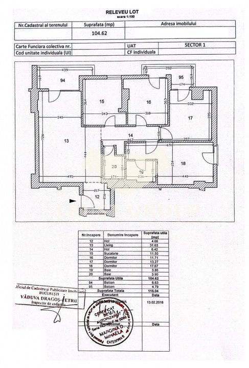 Dispune de o suprafata totala de 116mp, este decomandat si compartimentat astfel: living, bucatarie, trei dormitoare, doua bai, hol, spatiii de depozitare si doua balcoane.
