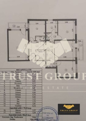 Dispune de o suprafata totala de 87mp, este decomandat si compartimentat astfel: living, bucatarie, trei dormitoare, doua bai, hol, spatii de depozitare si doua balcoane.