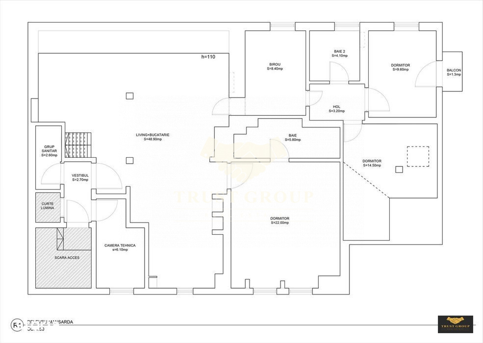 - Spațiu suplimentar în pod, cu acces direct din living, perfect pentru o zonă de relaxare, dormitor de oaspeți sau loc de joacă