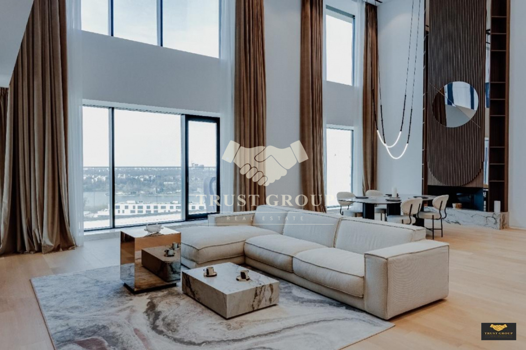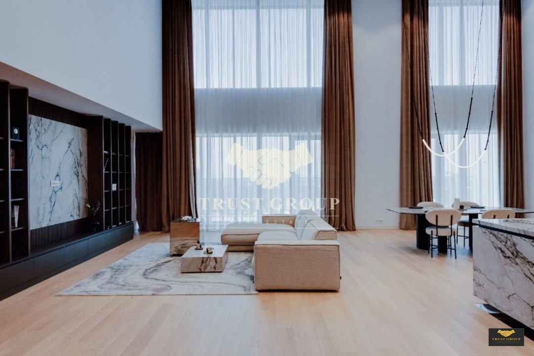 Situat la etajele 16+17 cu vedere spre Parcul Verdi dispune de o suprafata de 306mp cu o terasa de 19mp.