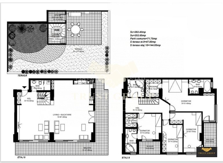 Triplex 5 camere Herastrau | 292mp + Terase de 192mp | 2 Locuri Parcare+Boxa