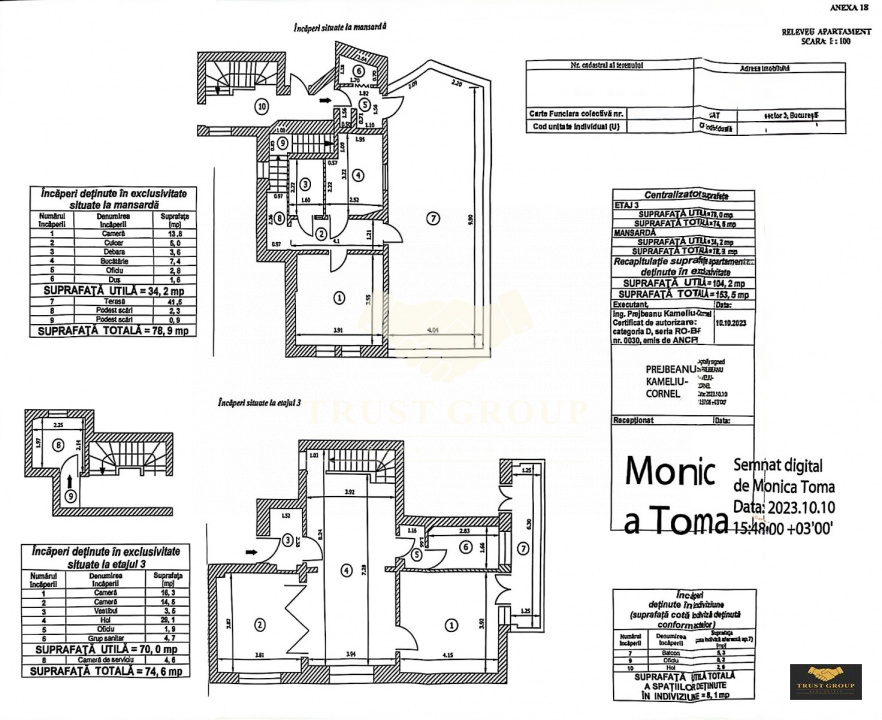 Etaj 3 - un living generos, 3 dormitoare spațioase, bucătărie separată si 2 bai.