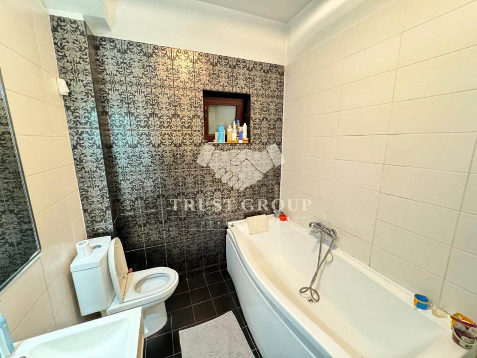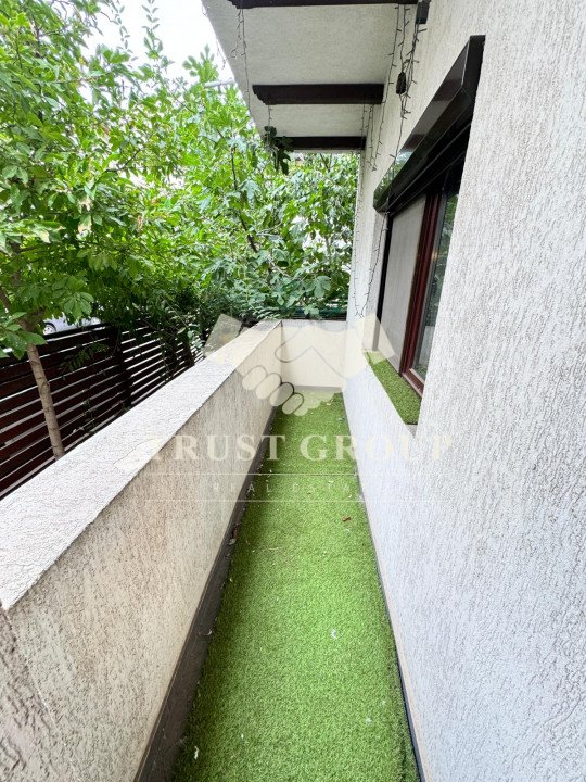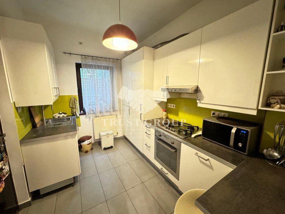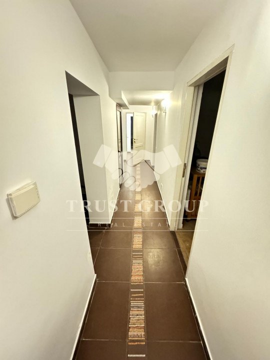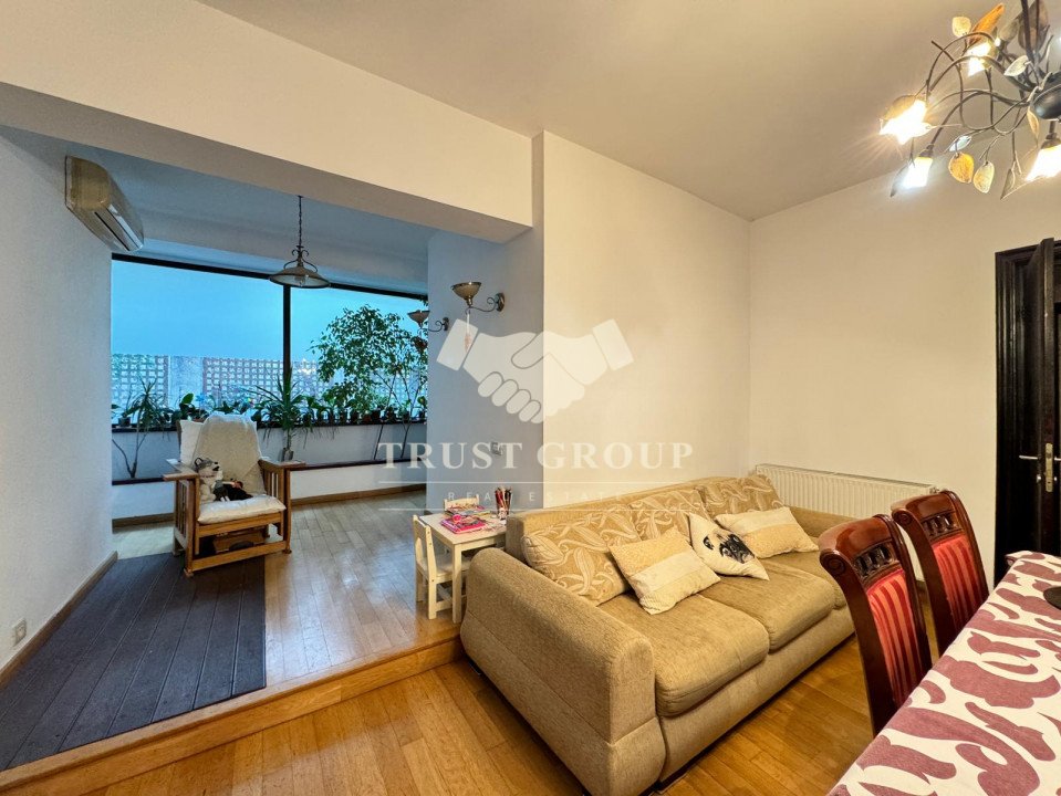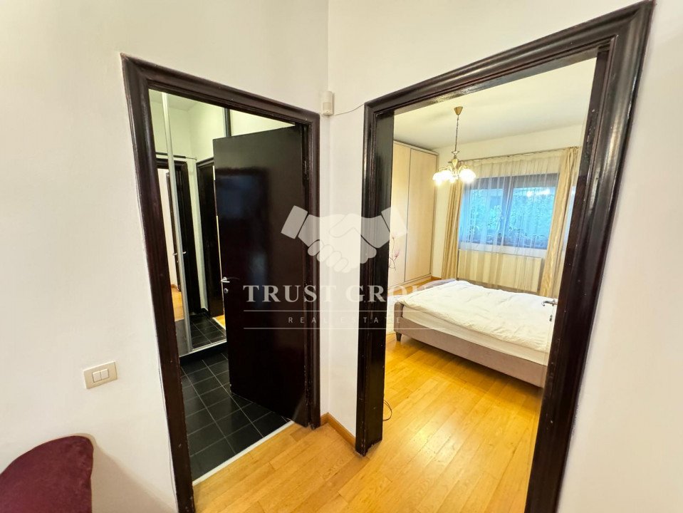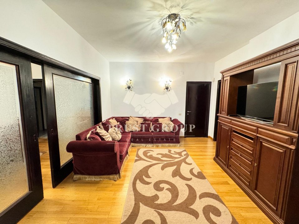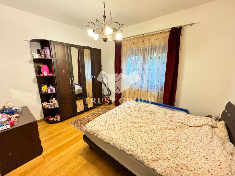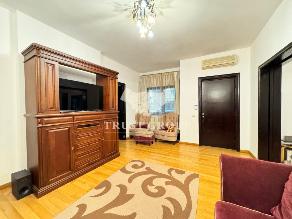 La parter - apartament cu 4 camere compus din zona de zi formata din doua camere generoase cu acces catre o logie inchisa, o baie pentru oaspeti, bucatarie inchisa mobilata si utilata, un dormitor matrimonial cu baie proprie si dressing, un dormitor secunda cu iesire pe balcon, o camera transformata in birou, spatii de depozitare si scara de acces catre demisol si curtea interioara avand o suprafata de 120mp.