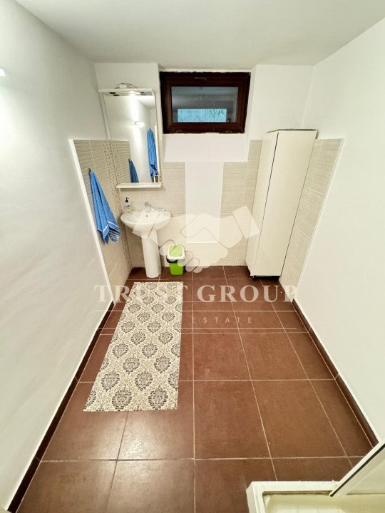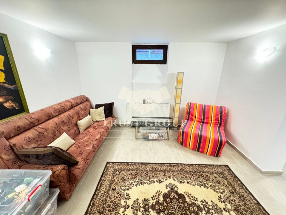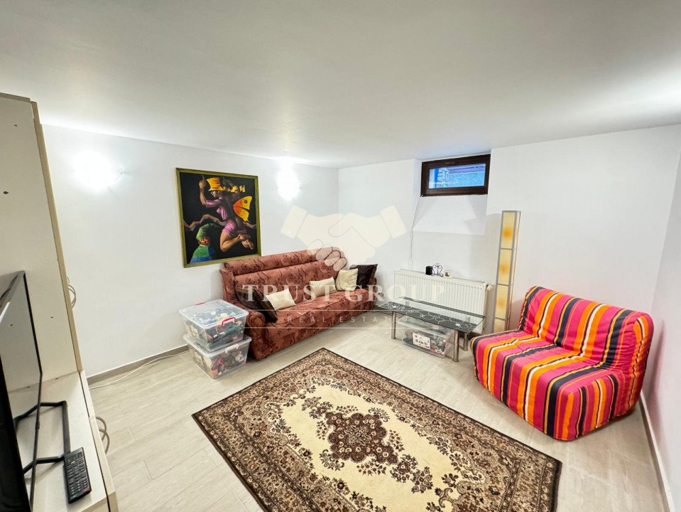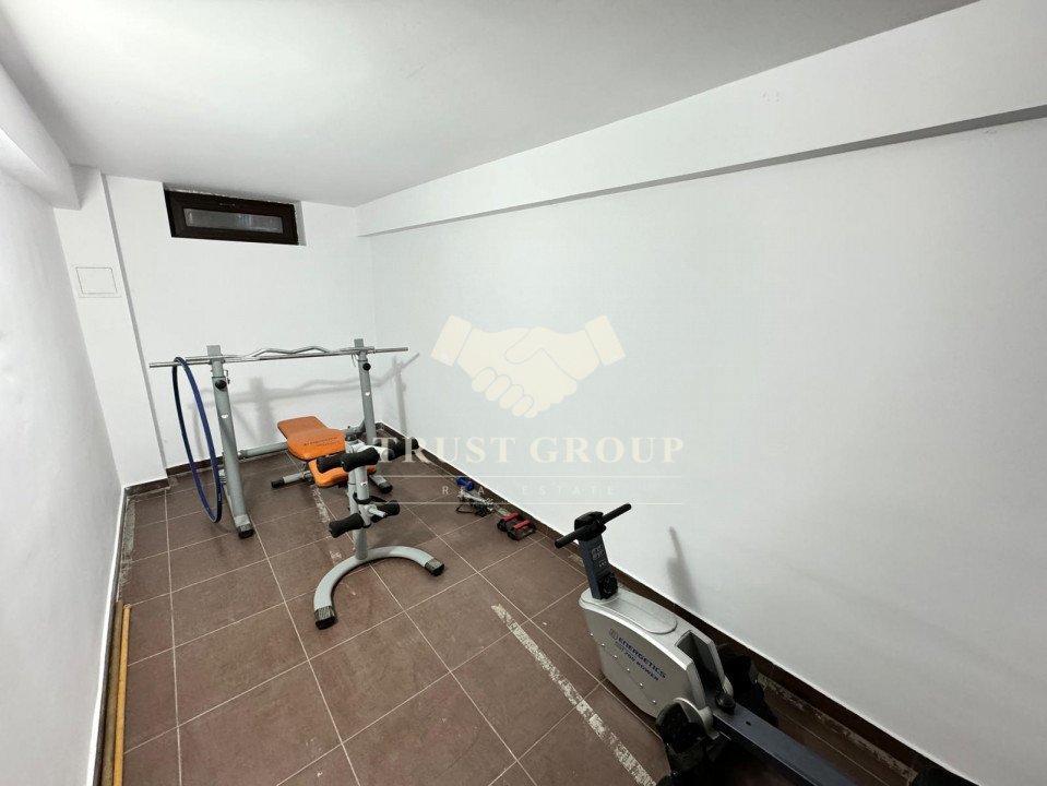 La demisol  - apartament de 2 camere cu baie si bucatarie, o camera transformata in sala de sport, spatiu de depozitare transformat in dressing, o camera tehnica folosita ca spalatorie si depozitare si doua boxe cu o suprafata totala de 100mp