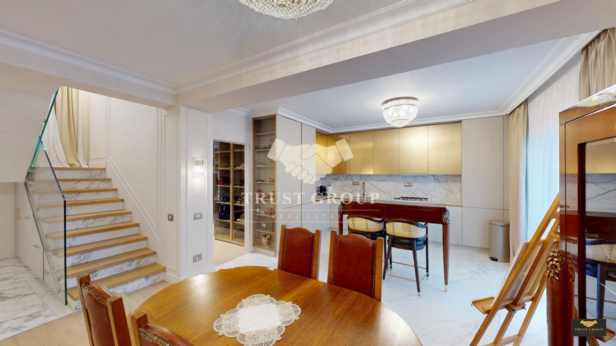 Proprietatea se vinde complet mobilată, exact ca în imagini. Proprietarii vor păstra doar cele trei piese din lemn masiv din zona de living și patul tip șezlong din piele, din dormitorul matrimonial.