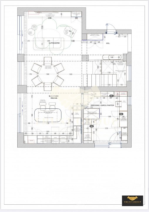 • Living spectaculos de 44,10 mp, cu zonă de dining și bucătărie open space complet mobilată și utilată