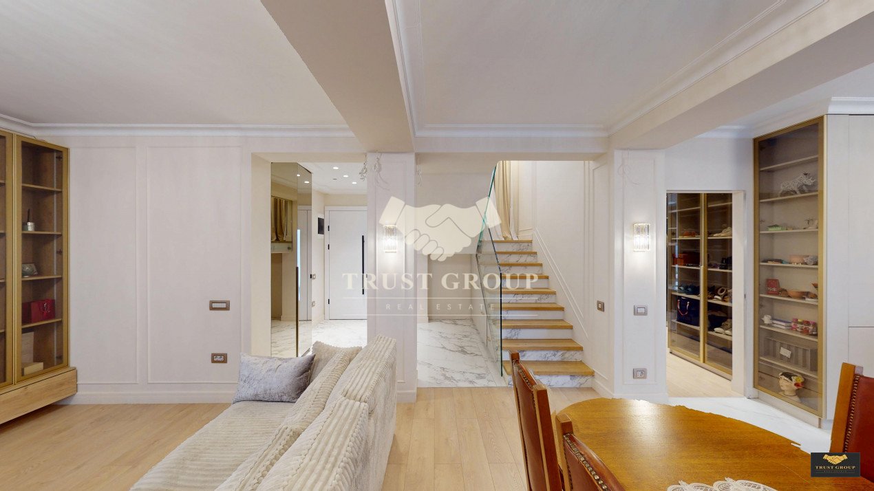 Proprietatea se vinde complet mobilată, exact ca în imagini. Proprietarii vor păstra doar cele trei piese din lemn masiv din zona de living și patul tip șezlong din piele, din dormitorul matrimonial.