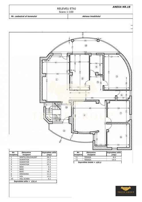 Etaj 1 - living, trei dormitoare, trei bai, dressing, 2 terase avand o supratata totala de 120 mp.